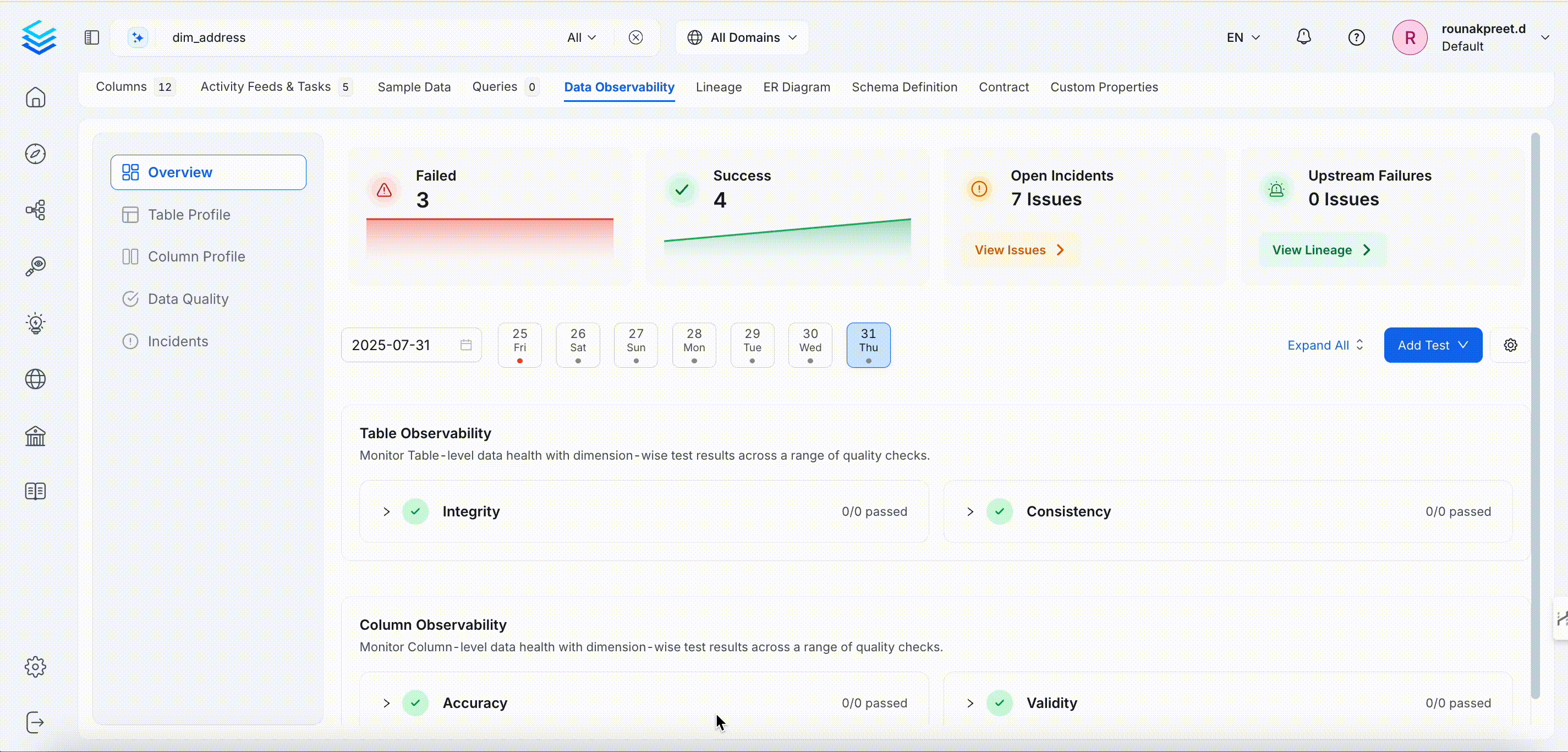 | Threshold | The maximum allowed rows or count before marking the test as failed. Default is 0. |